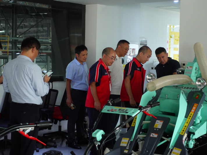 專家組一行首先在鑫源農(nóng)機(jī)多媒體中心聽(tīng)取了鑫源集團(tuán)企業(yè)發(fā)展介紹,在黃總的指引下,專家組走到了產(chǎn)品展示區(qū),技術(shù)負(fù)責(zé)人丁小兵向大家分別介紹了我司的小霸王微耕機(jī)、田園管理機(jī)、鑫源收割機(jī)、發(fā)電機(jī)組、園林草坪機(jī)等核心產(chǎn)品。大家邊聽(tīng)介紹邊仔細(xì)打量產(chǎn)品的每個(gè)細(xì)節(jié),還時(shí)不時(shí)掏出手機(jī)拍照記錄,對(duì)鑫源農(nóng)機(jī)的產(chǎn)品品控給予好評(píng),過(guò)程中專家組心系企業(yè)發(fā)展,特別詢問(wèn)了鑫源農(nóng)機(jī)產(chǎn)品銷量和盈利情況,大家對(duì)此進(jìn)行了深入交流和探討。