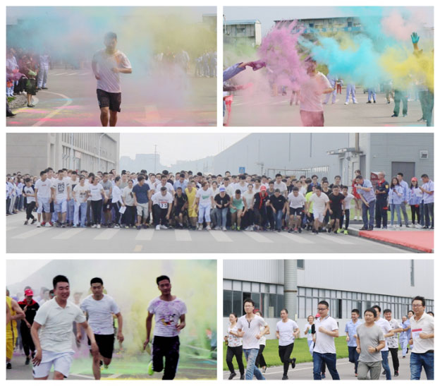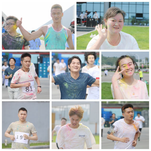 萬事俱備,汽車公司常務副總鐘秉福一聲令下,正式比賽一觸即發(fā)!五顏六色的彩粉漫天飛灑,剎那間,一幅幅風格迥異的彩色圖畫在參賽隊員的服裝上生長,滿是彩粉的頭發(fā)和臉頰鮮活了整個賽道。通過拋灑彩粉,傳達出健康繽紛的生活理念,消除家人們在工作和生活中的誤解和不快,跑出絢爛多彩新生活!