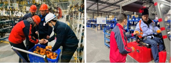 由汽車制造事業部副總經理劉渝牽頭,為每一位奮戰在崗位上的員工發放“愛心橙”。一份份水果,雖然并不貴重,但飽含了對每一位與公司共同戰斗的家人的關心與慰問,在恢復生產、努力工作的同時,公司也希望各位家人照顧好自己的身體。